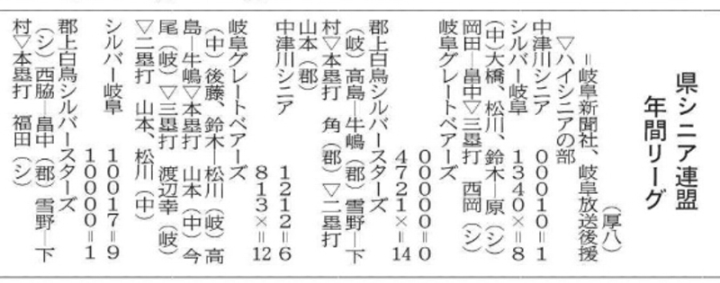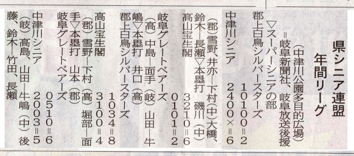 6月22日 ハイシニア戦 中津川G 組合せ 結果 |